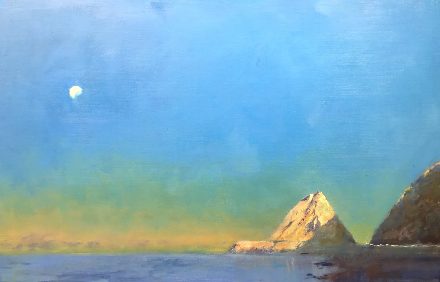 Mugu Rock, Morning, Setting Moon Oil  24 x 15  SOLD